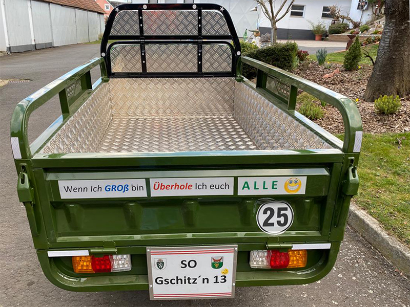Zugelassen für den Straßenverkehr nach der StVO und daher ohne Führerschein zu lenken.