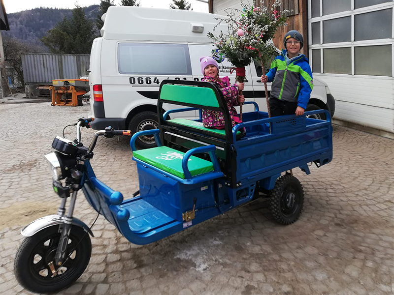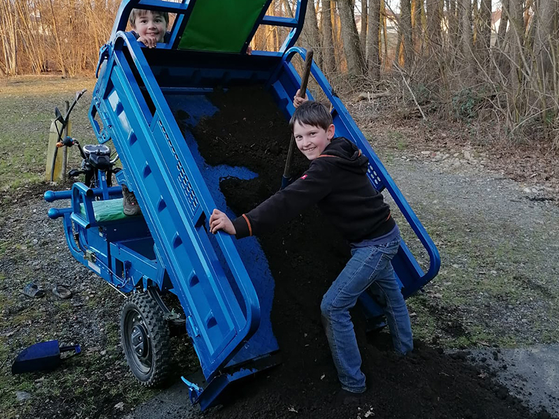 ... die Idee, einen günstigen und ökonomischen Weg zu finden, kleine Transporte ohne großen Aufwand zu erledigen. Und es fand sich im Verein Öko-Mobil ein Lieferant, der die zündende Idee hatte, ein E-Lastenfahrrad anzubieten. Dazu kam noch, dass die Anschaffung auch noch mit Förderungen gestützt wurde. Damit war das erste E-Lastenfahrrad so gut wie gekauft!